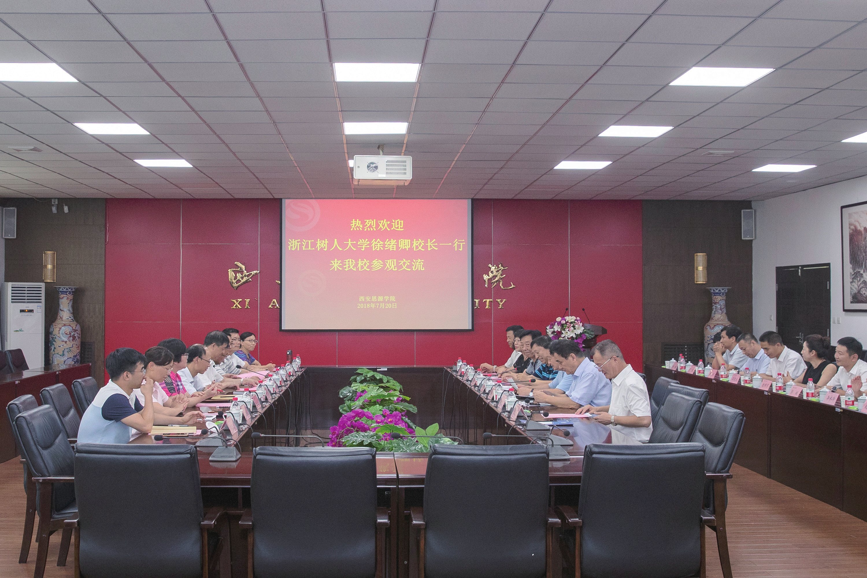 本报讯 7月20日下午,我校追赶超越“结对子”高校——浙江树人大学校长徐绪卿一行来我校座谈交流。董事长周延波、校党委书记张兴邦、常务副校长张正祥等我校领导出席会议。人事处、战略发展规划处、新闻宣传中心、教务处、校长办公室、党委办公室、房屋