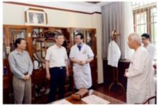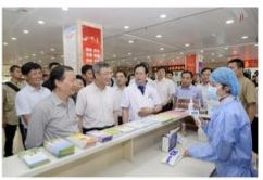 蔡达峰副委员长一行实地检查和查看了我院贯彻和落实传染病防治工作的情况。赵晓平院长向蔡达峰副委员长一行介绍了医院发展历史、人才队伍、专学科建设、医疗服务、教学科研、服务社会、文化建设等方面的情况。在广]诊楼前,赵晓平院长从医院传染病防治管理体系,完善制度建设、强化预防与控制,规范医疗救治、开展各级各类人员传染病防治及科普培训、扩大公益宣传六个方面详细汇报了医院传染病防治落实工作和取得的成绩。在"]诊预检台前,蔡达峰副委员长实地查看了门诊预检台装备,仔细听取了工作人员的汇报,询问了工作运转情况;在分检「]诊,他详细询问了预检大夫接诊患者和接诊病种诊断等情况。蔡达峰副委员长还查看了中医药文化长廊、科普长廊展示的内容,认为医院环境非常好,管理井然有序,中医药味很浓,文化建设有特色,还关心的询问医院人才队伍建设的情况。最后在名医馆,蔡达峰副委员长看望和慰问了正在坐诊的全国老中医药专家学术经验继承工作指导老师李彦民教授。蔡达峰副委员长说,国家高度重视传染病防治工作,中医院在治疗传染病方面发挥了很大的作用,陕西中医药大学附属医院在发挥中医药特色优势防治传染病方面有历史,有特色,有作为、有效果。
