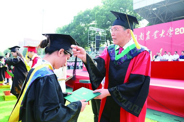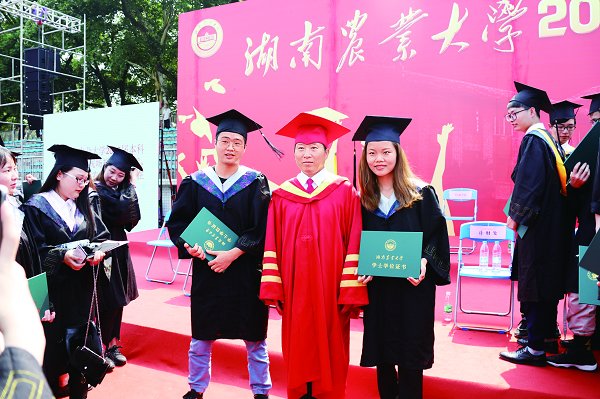 校党委副书记卢向阳宣读了《关于表彰湖南省普通高等学校2018届优秀毕业生和自主创业优秀毕业生的通报》《关于表彰2018届校级优秀毕业生的决定》。官春云和出席典礼校领导为18位优秀毕业生代表颁发了荣誉证书。