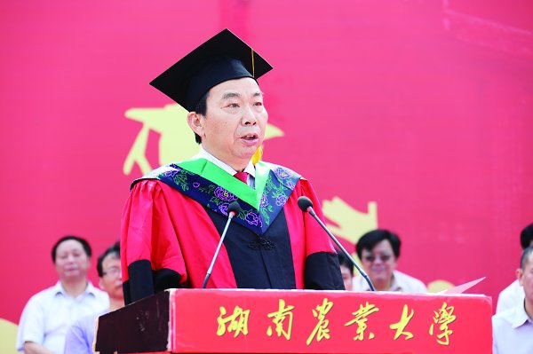 本报讯(通讯员 胡喜海 苏乐著)6月15日上午,我校2018届本科生毕业典礼暨学士学位授予仪式在学校东田径场举行。中国工程院院士官春云,校党委书记周清明,校长符少辉等在家校领导出席毕业典礼。各学院、机关处室负责人,各学院分管学生工作党委副书记,学生辅导员、毕业班班主任、2018届毕业生、教师、部分本科生及毕业生家长代表参加,张立主持毕业典礼。