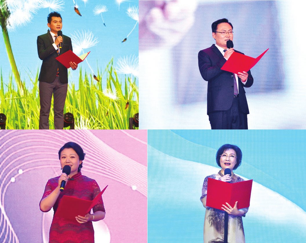 舞台上最耀眼的除了45位“护理之星”,就要属来自山东省朗诵艺术家协会的大咖们了。山东电视台播音指导、省朗诵艺术家协会主席李敏,山东电视台主任播音员、省朗诵艺术家协会副主席王乐斌等十位朗诵家,将演出推向一波又一波的高潮。富有磁性的嗓音、穿越时空的金句,配合荧幕上播放的一线医务人员各种工作场景,开启了人们对诗歌的无限遐想。《从心开始,我们是生命的护卫者》、《提灯的天使》、《南丁格尔的烛光》,一首首讴歌白衣天使的诗篇通过艺术家们或深情、或激昂、或婉转、或狂放的精彩演绎,不时博得现场阵阵掌声。由桑恒昌创作、薛中锐朗诵的《用生命照亮生命的灯》将整台晚会推向高潮。除了令人震撼的诗歌朗诵,由我院一线医护人员带来的歌曲《姐妹弟兄》、诗朗诵《祖国啊,我亲爱的祖国》和整齐划一、靓丽温馨的护理礼仪展示,更是将白衣天使们的骄人风采展现在观众面前。