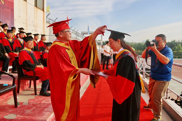 6月29日,我校2018届学生毕业典礼暨学位授予仪式在东校区运动场举行,2540名博士、硕士研究生,5374名本科生顺利完成学业。校领导哈明虎、王延吉、彭文民、吕海涛、曹庆奎、王林昌、何立新,河北省高端人才、原校党委常委、副校长孙玉壮出席典礼并为毕业生代表颁发毕业证书、学位证书。典礼由校党委副书记彭文民主持,校党委常委、副校长吕海涛宣读了毕业生及授予博士、硕士、学士学位学生名单。校学位评定委员会委员,机关各部门、各教学单位、各教辅单位的主要负责人出席典礼仪式。