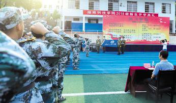 本报讯 ( 记者 夏汉伟 李罗潇摄影 赵超超) 9月 21日下午, 学校举行 2018级新生军训总结表彰大会暨开学典礼。党委书记陈弘、 校长曾宝成、 党委副书记唐艳明、 副校长宋宏福、 纪委书记彭立威、 副校长李常健、 吴小林、 程智开, 党委委员、 组织部长何福林,党委委员、 宣传统战部长杨涛, 武警永州支队副参谋长蒋志平出席。宋宏福主持典礼。