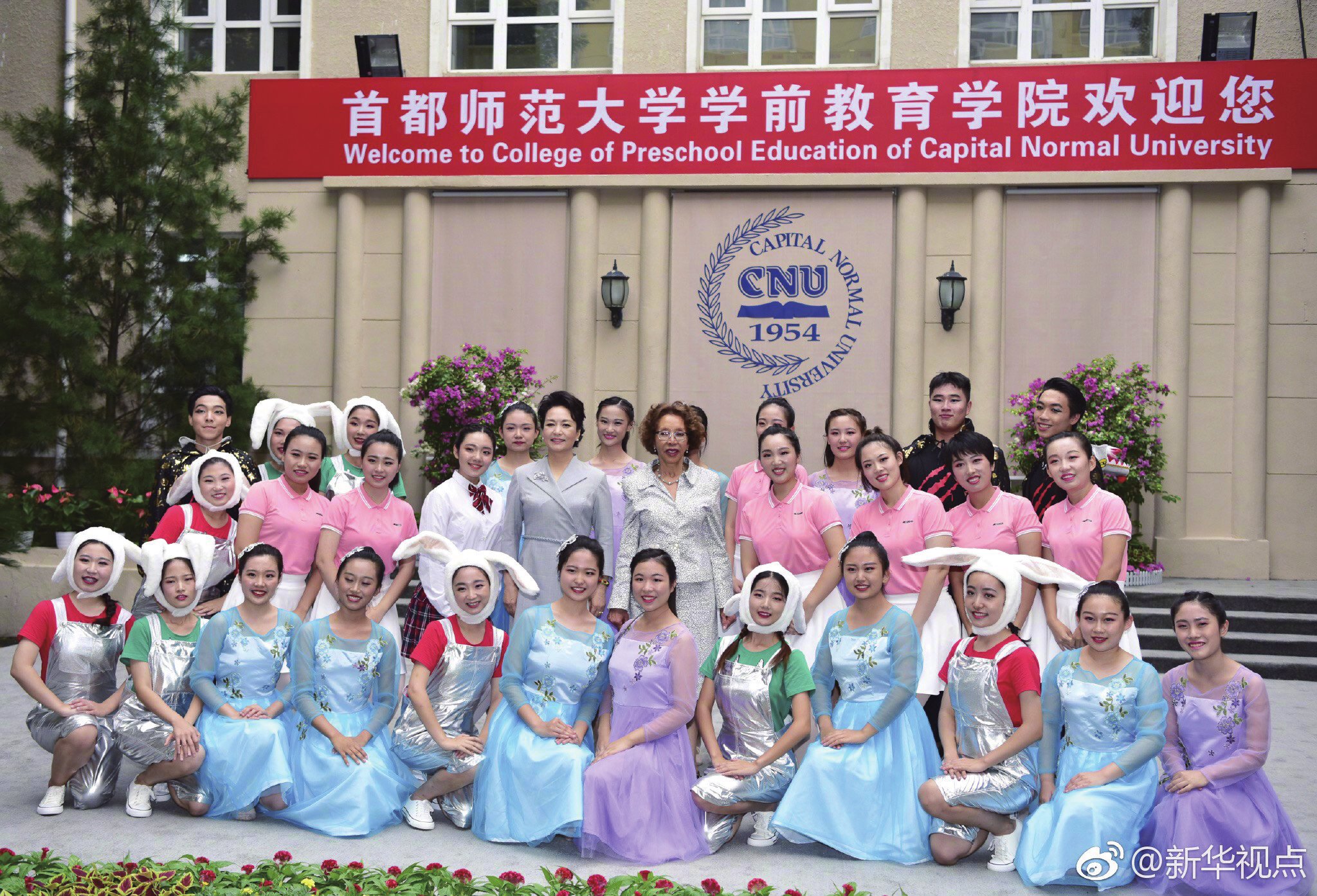 据新华社新华视点消息节奏欢快的鼓点、缤纷娇艳的鲜花,9月2日下午,国家主席习近平夫人彭丽媛同南非总统夫人莫采佩来到首都师范大学学前教育学院,受到学生们的热烈欢迎。两人走进教室,观看了婴幼儿眼动实验、脑电成像实验演示和皮影故事表演,聆听了学生们演唱的中文歌曲《歌声与微笑》和非洲儿歌《雄鸡报晓》,并在小花园里欣赏了学生们自编自演的节目。(新华社记者白洁丁林殷博古)