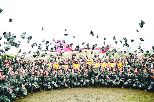 25连学员王自意代表全体参训新生表示,军训的苦和累让他们从温室中的花朵变成意志品质坚定、组织纪律性强、集体荣誉感强的大学生,他们将在今后的大学生涯中将所有军训的收获凝聚为步步前进的力量。