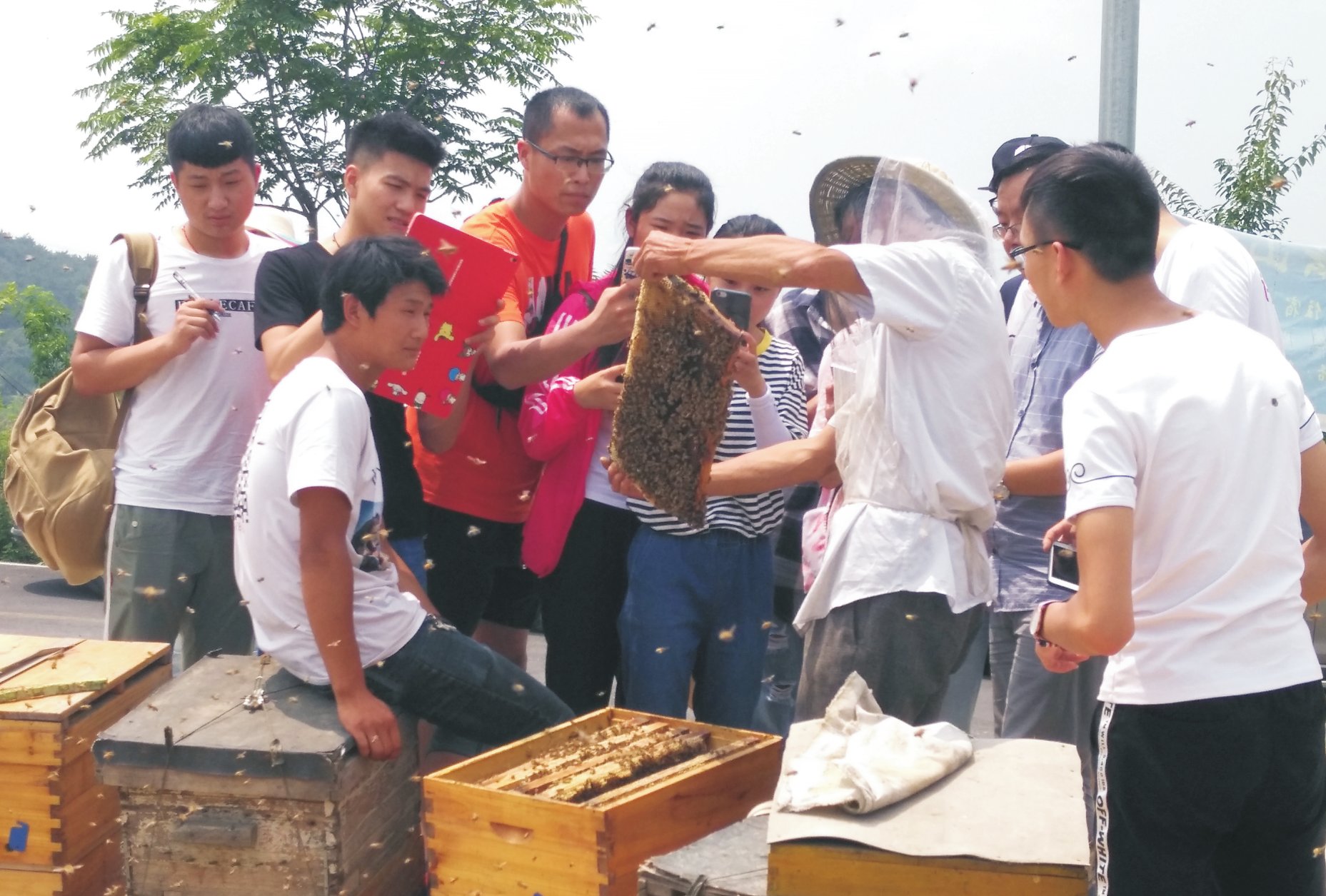 通过与蜂农的近距离接触,实践团队员品尝了蜂农精心制作的蜂蜜,学习了关于蜂蜜的知识后,我们对养蜂人的工作又增加了一份敬重之感。期间有幸和来自开封的一对父子蜂农经历了一场“考验”。