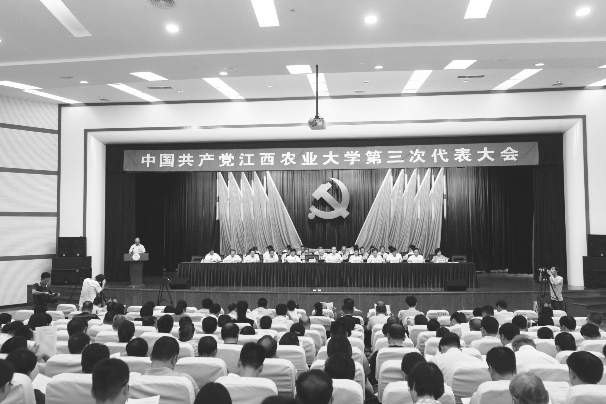上午9点,大会在雄壮的国歌声中开幕。黄路生同志代表中共江西农业大学第二届委员会向大会作题为 《牢记初心使命,坚持内涵发展,开启建设有特色高水平农业大学新征程》 的报告。报告高举中国特色社会主义伟大旗帜,以习近平新时代中国特色社会主义思想和党的十九大精神为指导,回顾总结了学校自第二次党代会特别是“十二五“以来的工作成绩和历史变化,深刻分析了新时期学校面临的机遇与挑战,明确未来五年学校的奋斗目标和战略举措,对新时期落实全面从严治党要求,提升党的建设质量作了全面部署。