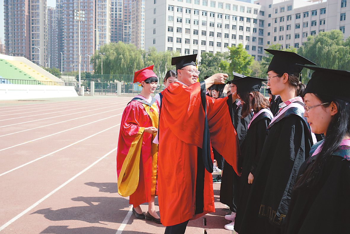 副校长姜秋霞宣读了 《兰州城市学院关于授予白慕容等3182名本科毕业生学士学位的决定》。校领导为每一位毕业生正冠拨苏、颁发学位证。