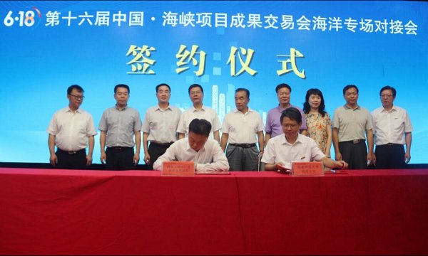 本报讯 6月15日,第十六届中国·海峡项目成果交易会海洋专场对接会在我校隆重举行。大会由福清市政府和我校共同主办,我校28项科技成果与企业对接签约,签约项目总额达到7576余万元。开幕式上,我校海洋研究院正式揭牌。