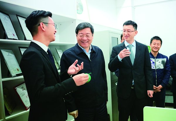 杜家毫一行走进校史馆,了解学校百余年办学历程和发展成果。在国家植物功能成分利用工程技术研究中心,看到茶叶从植物资源转化为高附加值的保健食品、日化用品、功能饮料,杜家毫寄语研究人员积极对接国内外相关领域研究前沿,加速农业科技成果转化,助推我省农业产业转型升级。来到大学生创新创业孵化基地,捕获果蔬虫害的环保诱蝇球、“五星级”环保健康猪舍、美丽乡村设计咨询服务……一批创新创业产品从这里走向市场。杜家毫认真听讲解、看成果,详细询问市场前景和回报情况。他表示,要利用农业优势学科,深入农村一线,通过创新创业帮助农民发展生产,在推进农业现代化中实现自身价值。