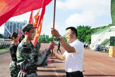 党委书记张勇为2018级各专业学生授旗 院长杜勇寄语新生要要 要大学不轻松袁青春不虚度浴