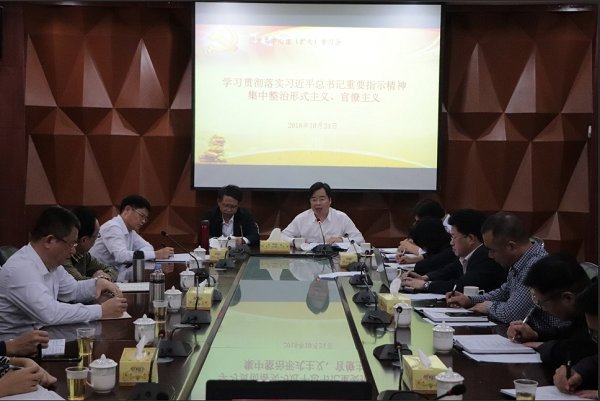 会议认为,这次集中整治指向“形式主义、官僚主义”,靶向更加明确,在站在新的起点上对作风建设作出的再动员、再部署、再深化,是深刻分析全面从严治党面临的形势和任务并采取的战略举措。《工作意见》对集中整治工作要求明确,提出了3个坚持的工作思路、4个方面12类问题的整治重点以及9项具体措施,是站在新的起点上对作风建设作出的再动员、再部署、再深化,也再次表明了党中央坚定不移全面从严治党、持之以恒正风肃纪的鲜明态度和坚定决心。学校各级党组织要坚持以习近平新时代中国特色社会主义思想和党的十九大精神为指导,认真贯彻落实习近平总书记关于坚决整治形式主义、官僚主义的一系列重要讲话和指示批示精神,提高政治站位,切实增强“四个意识”,坚定不移做到“两个维护”,把整治形式主义、官僚主义作为一项重要的政治任务,摆在更加突出位置。