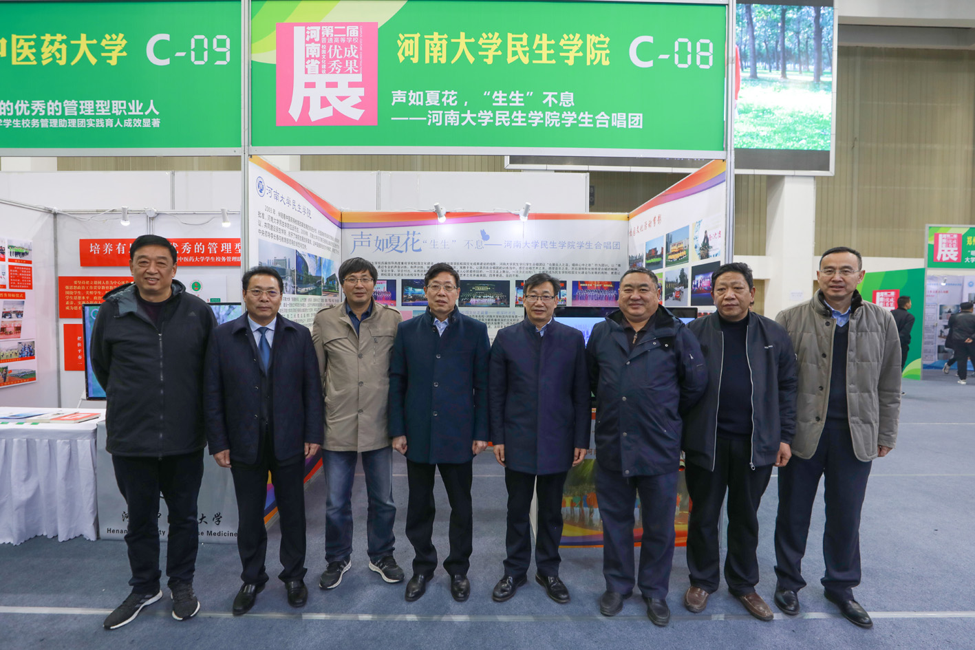 12月5日上午,河南省教育厅副巡视员李金川,河南大学党委副书记张宝明,河南省教育厅学生处处长王继东莅临学院参观展览。学院领导郑逢斌、王庆礼、刘道衔、高如民等陪同参展。每到一处展位,李金川都详细了解该项优秀成果的特色之处,对其给予充分肯定,并就成果在今后的再创新与提升提出了指导性的意见。