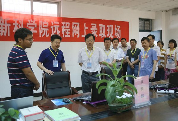 在录取工作现场,刘鸣韬院长代表学院对校领导的关心慰问表示感谢,并向李校长详细汇报了我院招生工作的最新进展。当得知我院今年的录取最低分数线高于省控线50余分时,李校长非常高兴,对我院招生工作取得的成效给予了充分肯定。他要求全体工作人员,要认真贯彻落实国家和我省有关政策规定,严守招生工作各项纪律要求,确保录取过程 “零差错”,做到对考生负责、对学校负责、对社会负责,把招录工作做严、做细、做实、做好。在谈到如火如荼的新校区建设时,李校长向在场人员介绍了快速有序的新校区建设规划,展望了新科学院美好的发展愿景,希望大家共同努力为全面提升学院的办学实力做出更大贡献。