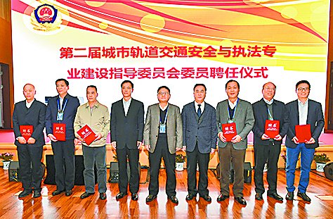 论坛期间,举行了铁道警察学院城市轨道交通安全与执法专业建设指导委员会委员换届工作及聘任仪式。聘任李剑涛、陈济鹏为第二届城市轨道交通安全与执法专业建设指导委员会主任委员,田勇浩、薛怀祖为副主任委员,殷杰、武顺发、曹声伟、杨帆、魏建、乐有金、付新河、左琳为委员。公安部治安管理局马玉生副局长、学院陈东升书记、上海公安学院韩勇书记为新一届委员会委员颁发了聘书并合影留念。 文/轨道系 图/新闻中心