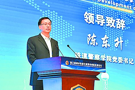 陈东升书记在致辞中介绍了铁道警察学院贯彻落实公安部部长赵克志关于创造条件建设交通运输警察学院的情况,介绍了学院城市轨道交通警务学科建设、人才培养、科学研究、国际交流等方面的建设成果,回顾了前两届论坛成果转化为公安机关现实战斗力的情况,对第三届论坛交流研讨成果充满期待。