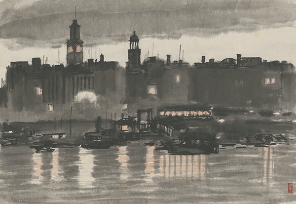 李斛 《江汉关边》 纸本彩墨 27.5×40cm 20世纪50年代