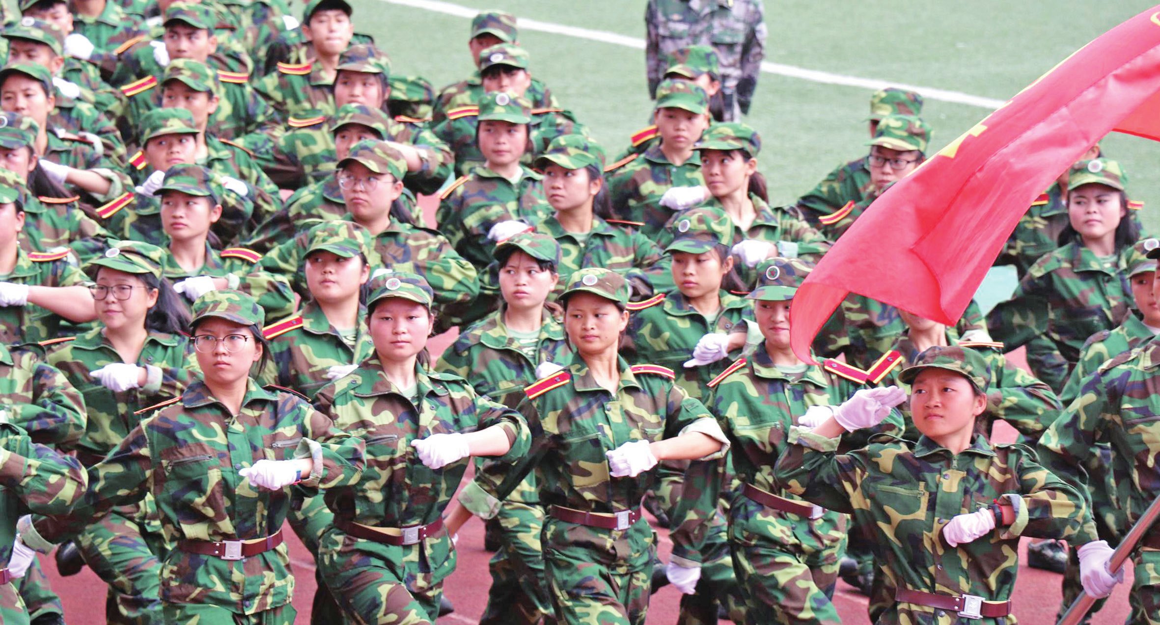 在奏唱国歌、迎校旗之后,伴随着雄壮激昂的奏乐,各方队进行了分列式表演。受训新生精神抖擞,迈着矫健的步伐喊着响亮的口号通过主席台,接受与会领导和部队首长的检阅。随后,表演方阵还展示了应急棍表演、擒敌术表演、匕首操表演和队列才艺表演。