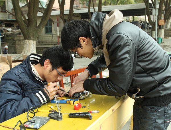 校园内也活跃着一批批的志愿者。他们在校主干道组织了签名活动以及知识竞猜等;他们还在灯光篮球场设立义务维修点,帮助师生义务维修小家电,用实际行动向雷锋同志学习。