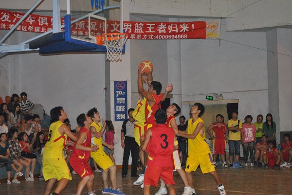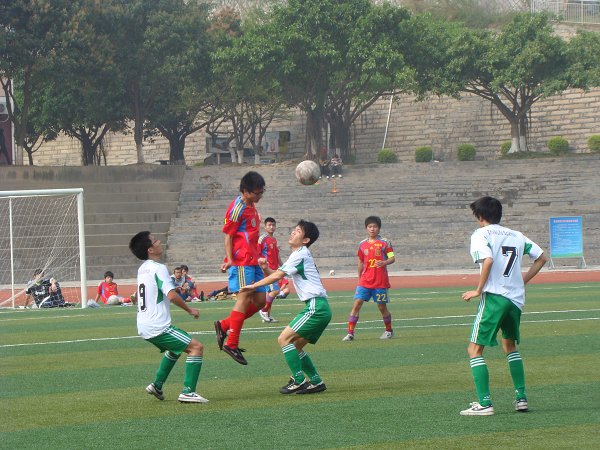 4月23日上午,第十届校运会足球联赛两场揭幕战打响,环生系和外语系获得首轮比赛的开门红。半决赛和总决赛将分别在5月31日和6月4日进行。图为环生系(白)对战电信系(红)。环生系 记者团 詹昌熙 摄
