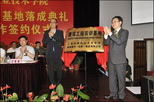 本报讯 5月10日,由我校与盛高置地(控股)有限公司合作兴建的上海思博职业技术学院建筑工程实训基地举行落成典礼暨校企合作签约仪式。上海市教委领导、教育部建设部教指委专家及国家级示范高职院校领导,央企、国企及具有特级、一级资质的建筑行业知名企业有关领导等出席祝贺。上海教育电视台以《“建筑工地”成课堂 思博学院启用建筑工程实训基地》为标题在教育新闻中予以播出报道。