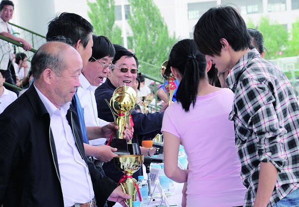 一位运动会裁判的崔同学表示,“为了保证800米以下的径赛项目能在微小的差距里决出胜负,每一条跑道都由一位学生和一位教师共同计时,取平均时间作为选手的最终成绩。”她还说,“同学们拼了命跑一次不容易,只要不给大家记错成绩,我累点儿也值得。” (王佳雯)