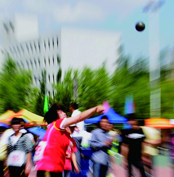 6月7日上午,体育场上的大学生运动会进行得如火如荼,北侧的篮球场也进行着一场由离退休教职工组成的小型运动会。他们中年龄最大的82岁,最小的也有56岁,平均教龄在35年以上,有人已满头银发,但却精神奕奕。他们的运动项目虽然不像体育场上的运动会一样激情燃烧,但也妙趣横生。这次运动会有22名选手参加比赛,共太极柔力球、定点投篮、60米吊瓶和60米端球四项。顾及到他们的身体状况,比赛项目都是很温和的方式,但老人们却非常较真,比赛的激烈程度引来行人驻足观看,并不时听到人群中发出的欢呼声。