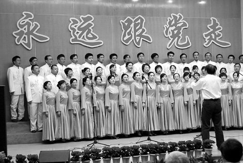 6月9日,主题为“红色记忆”的全校教职工庆祝中国共产党成立90周年歌唱大赛举行。近2000名教职员工尽情放歌,唱出华中大人心中的欢快和对党的90周岁生日的热烈庆祝。校党委书记路钢、党委副书记欧阳康观看了演出。(见图①)6月10日,由校团委主办,校学生会(医科)承办的“扬帆新征程,赤红同济心”庆祝建党90周年暨第八届“同济之春”青年科技文化艺术节闭幕式文艺晚会举行。本次晚会分为“如歌岁月”“火热青春”“扬帆征途”三个篇章。校党委副书记、副校长张晋观看了演出。(见图②)6月15日,由校党委研究生工作部主办、校研究生会医学部承办的庆祝中国共产党成立90周年“党在我心中”歌舞晚会举行。来自各院系所的200余名学子为大家带来了一场精彩纷呈的视听盛宴。校党委书记路钢,校党委副书记、副校长张晋观看了演出。(见图③)6月16日,校机关党委举行主题为“永远跟党走”的红歌大赛。校党委书记路钢,常务副校长林萍华,校党委副书记、副校长张晋参加了党组织关系所在支部的演出。校党委副书记欧阳康致词。(见图④)6月16日,由校团委、大学生艺术团、校学生会主办的主题为“光辉岁月 理想青年”华中大青年纪念中国共产党成立90周年主题歌会举行。1000余名青年学子用歌声向党的90华诞献礼。校党委书记路钢,常务副校长林萍华,校党委副书记欧阳康,校党委副书记、副校长张晋观看了演出。(见图⑤)