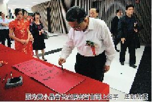 图为黄小晶省长在嘉宾留言簿上签字 庄凯航摄