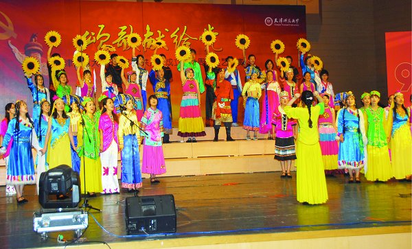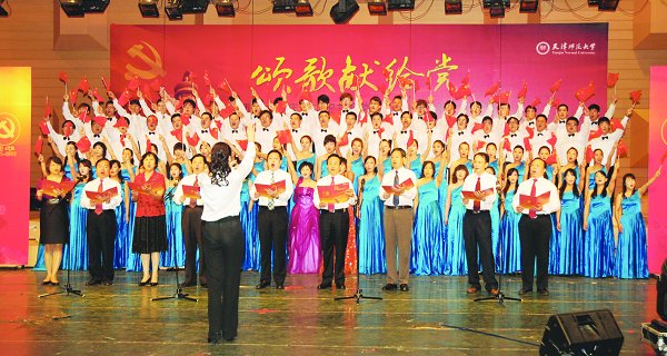 6月16日,我校统战部举办了以“九十载风雨同舟,九十载荣耀辉煌”为主题的庆祝中国共产党成立90周年统一战线成员联欢会;6月21日,美术与设计学院与天津师范大学中国画艺术研究所联合主办了“庆祝中国共产党成立90周年学生书画作品展”;6月15日,我校离退休工作处组织老干部开展了“铭党恩、颂党情、跟党走”庆祝建党九十周年座谈会;6月9日,新闻传播学院第17期预备党员培训班学员40余人来到中共天津党史纪念馆参观学习并举行入党宣誓仪式;音乐与影视学院党总支于6月9日、16日、23日以声乐、器乐、舞蹈表演与座谈会等形式举办了三场庆祝建党90周年系列活动,迎接中国共产党建党90周年。另外,外国语学院、马克思主义学院等多个基层学院师生也以不同形式开展了纪念活动。□党委校长办公室、宣传部、校团委