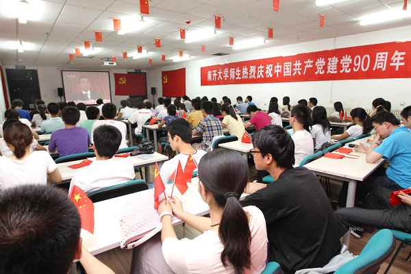 本报讯(记者 张丽 平扬 张轶帆 陈鑫 张剑 陈晨 摄影 任永华 陈晨)7月1日,中国共产党迎来90华诞。南开大学师生怀着激动的心情,通过电视、网络等收看在北京人民大会堂举行的庆祝中国共产党成立90周年大会,聆听胡锦涛总书记在大会上的重要讲话。大家纷纷表示,将沿着党的光辉足迹,改革创新,奋勇争先,为党的事业作出积极贡献。