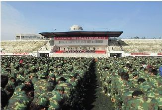 本报讯 (本报记者 余宏超)9月 19日,我校田径运动场洋溢着欢庆的气氛,2011级新生开学典礼暨军训动员大会在这里隆重举行。上午9时,五星红旗在体育场冉冉升起,嘹亮的国歌声响彻在田径运动场上空,开学典礼正式开始,5000余名新生由此开始新的求学之旅。