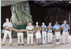 最长巨蟒:美国俄亥俄州一家动物园中生活着目前人类捕捉到的世界上身体最长的蛇――一条长达7.32米的蟒蛇。网纹蟒“绒毛(Fluffy)”被认为是笼中蛇之“寿星”。