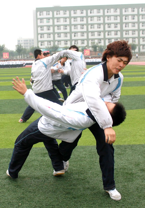 大会开始后,英姿飒爽的国旗护卫队入场,在国歌声中,国旗冉冉升起。王斗虎书记在军训总指挥程晓光和阅兵总指挥王刚的陪同下对检阅了队伍。标兵敬礼,分列式正式开始,44个连队在教官的带领下,迈着整齐划一的步伐,喊着嘹亮的口号,从主席台前经过。送军训团团旗,开始汇报表演科目。队列方队,以唱歌的形式,高喊“今天我以培华为荣,明天培华以我为傲”的口号;军体拳方队,气势恢宏、铿锵有力,赢得阵阵掌声;匕首操方队动作干练、招式娴熟;手语《感恩的心》和《我就是很不错》表演中活泼俏皮的陕西话,博得大家欢笑;交通手势操指挥若定,颇具风采;少林小八动方队,他们用多变的队形,高呼“培华腾飞”;擒敌拳方队,表演者呈回形连续扑到在地,动作整齐,擒敌有力,一招一式尽显英雄本色。最后在教官的指挥下,新生们高唱《黄河大合唱》。