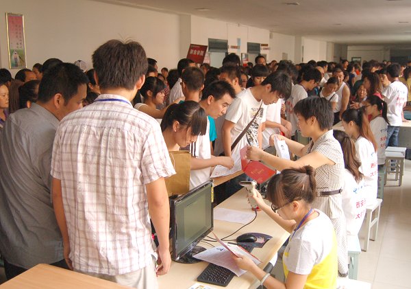 9月1日至9月3日,我校2011级新生报到工作在长安和高新两个校区同步展开。在紧张忙碌的迎新工作中,学校各级领导亲临一线指导工作,各部门、各院系周密安排、科学部署,学生志愿者们不辞辛苦、默默奉献,经过全校上下的通力协作,圆满完成了2011级新生的接待工作。