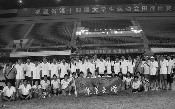 特别值得庆贺是公共体育组的田径成绩,在学校田径高水平训练中心老师的努力下,学生的专项运动成绩得到迅速提高,将田径总分水平从历史上的第五名跃升为第一名,在福建省第十四届大学生运动会田径比赛中,我校甲组(本科院校组)以总分400分的绝对领先优势,荣膺了甲组团体总分第一名,这一优异的成绩实现了我校公共体育组在全省大运会上田径项目成绩的历史性突破,同样也使我校总锦标上升为第二名,创造了我校总锦标历史最好成绩。