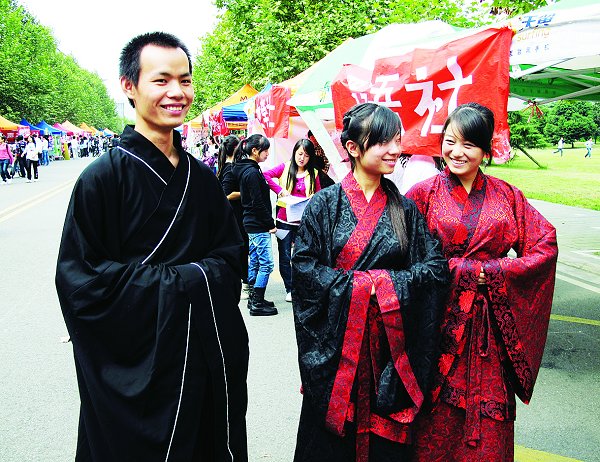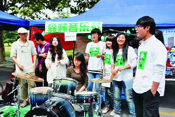 一方海报,一排架子鼓,两把吉他,森林音乐社在现场开起了小型音乐会。卖力的演唱伴随着有力的旋律,迸发出属于这个社团的激情与热血;高个男生披假发着长裙,漂亮的女生手持道具大摆造型,与田动漫社的现场动漫真人秀吸引着无数人驻足围观拍照;一条长绳串起从1999年到2010年12场年度大戏,张张剧照是多年来起点话剧社的成长足迹……近年来,我校高度重视学生的课余文化生活,为了培养“宽口径,高素质”的创新性人才,学校对学生社团的发展密切关注。在学校的高度重视下,各具特色的学生社团如雨后春笋般涌现。