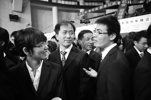 不仅仅是女生面对就业困难有压力,一些男生也表示现在可不是看自己想做什么、能做什么,而是看企业、岗位需要什么。尤其是本科毕业生,难免会遭遇一定的学历瓶颈。石油工程专业一名本科毕业生坦言:“因为家庭的原因,我必须选择就业,所以我今天的目标就是找到一个职位,尽我最大的能力来适应企业的需要。”