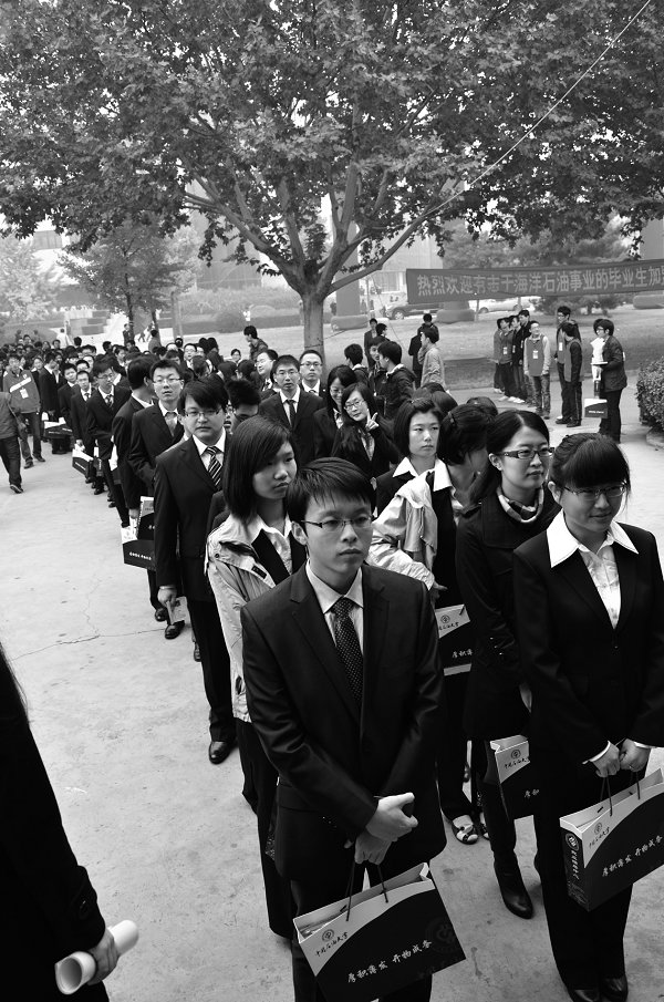 11月1日的北京,飘着细雨,透出深秋的寒意,石大多功能厅内外却被涌动的人潮烘托出了一股热切。中国海洋石油总公司大型校园双选会现场,34家下属单位来校集中招聘,吸引了2000多名毕业生参加。
