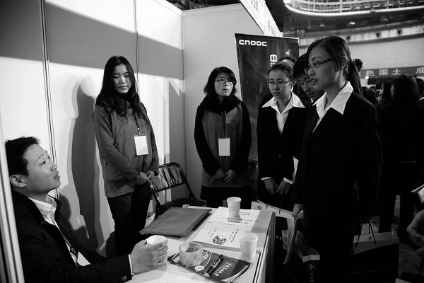 的确,通过采访也可以发现,不少毕业生对于自身的定位、期望的职位以及毕业后的设想都较为模糊,但这并不完全是没有明确方向的原因,很大程度上现实的压力让年轻的择业者无奈地变得被动。“我已经被‘打击’习惯了。现在能找到一份工作便好。”勘查技术与工程专业的毕业生冯紫娟已经有过多次求职面试的经历,她少了些紧张,多了点淡定,却也流露出一些无奈。中国海油下属单位,由于海上作业的特殊性,许多岗位明确说明只要男生,于是不少各方面条件都很优秀的女生只能“望洋兴叹”,而求职其它岗位时女生也屡屡受挫。