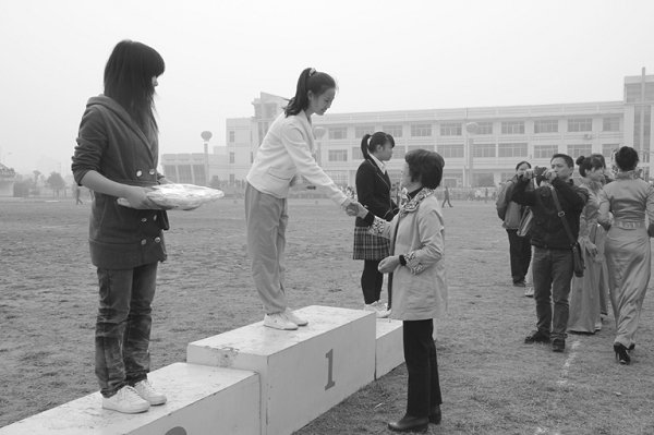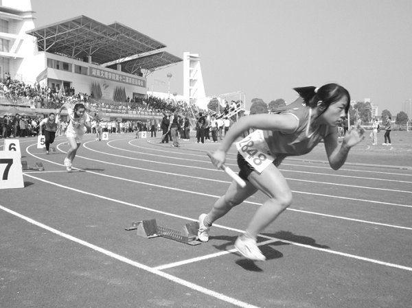 在这两天的比赛中记者采访了很多令人感动的运动员,他们中有破校纪录的,有连续三年获得冠军的,有带伤上阵的等诸多不同情况。但是,记者从他们身上找到了同一个闪光之处,那就是为荣誉而战。每个“为荣誉而战”的斗士都是光荣的。晏丽君同学便为这种“为荣耀而战”的精神作了最好的诠释,在甲组女子3000米比赛中,来自计算机学院大二的晏丽君在比赛开始不慎被绊倒跌落在地,之后仍带伤坚持完成了比赛,虽然最后的成绩不是很理想,但是她所展现的体育精神已经赢得了全场掌声。当记者问到是怎样的精神支柱让她完成比赛时,她说:“当时就是不想放弃,在心里怀着一个信念,虽然最后没有拿到名次觉得有点遗憾,但是一边跑一边看见有许多不认识的人都为我加油,所以很努力的坚持着,真的很谢谢他们。”在赛后,看见同学忙着找车送自己去医院,觉得非常感动,她委托记者向关心她的同学表示感谢,并希望能继续参加明年的运动会。她这样鼓励跌倒的选手:“跌倒了也要爬起来继续比赛,因为成绩真的没有那么重要,能够坚持下来就已经是很大的成功了,你收获的不仅是一份锻炼,还有一份感动与激情。”