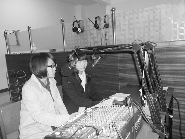 图为广播站同学在播音
