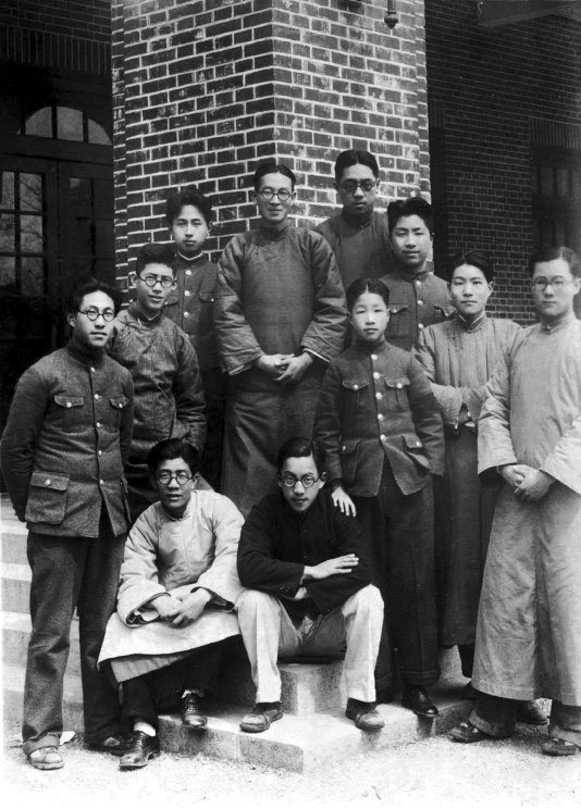 钱学森(后排左一)与北师大附中考入交大的学子合影