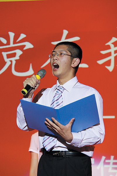 有了这次经历,“僧哥”在平时的排练中开始有意地锻炼自己克服紧张。他会先把讲稿根据内容分为几个部分,分别背诵。他会站在宿舍的阳台上对着空旷的操场背诵,一旦遇到忘词或者结巴的地方,他就会从头背诵。正是靠着这种方法,他才能对演讲内容倒背如流。同时,对着空旷的操场大声朗诵,也帮助他有效地摆脱了紧张。“虽然上台前还是会紧张,但是一旦当我站在舞台上,追光灯一打,下面的观众基本就看不清了,我会一下子感觉到整个舞台都是自己的了。”他说道。