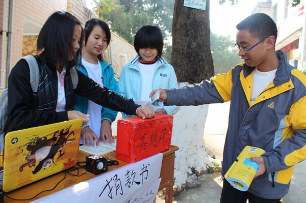大会结束后,青年志愿者协会还举行了梧桐计划之下梧小学专项爱心募捐行动、庆祝国际志愿者日游园活动、梧桐计划之下梧小学农民工子女生日同欢会、龙江有爱心愿召集活动、校园涂鸦清理活动、志愿者服务周之资源回收活动日等一系列子活动。爱,我们在行动“同学,为那些特殊的小朋友奉献一份爱心吧!”12月4日,我校青年志愿者走访了各个学生宿舍,邀请同学们共同参与到“梧桐计划之下梧小学专项募捐”的爱心活动当中,发动同学自愿捐赠资金或实物,为下梧小学的体育教学募集体育教学器材和爱心书籍。同时,部分青年志愿者在校图书馆前设点,收集整理同学们捐赠的物资。