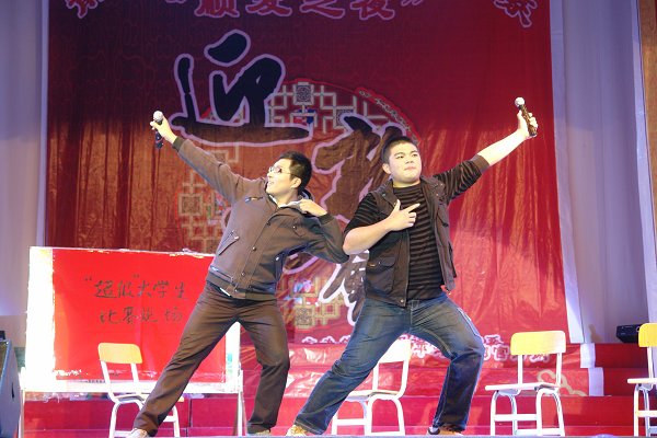 中文系迎新晚会小品《超级大学生》。本报见习记者 林桂森 摄