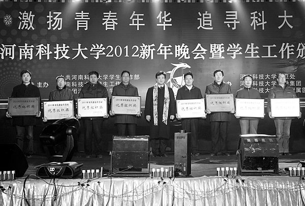 《河南科技大学报》 - 第184期 激扬青春年华 追寻科大梦想——2012新年嘉年华活动掠影 2011-12-30T16:00:00.000Z 113 亲切交谈祈福2012猜 谜 歌 唱弹 琴表彰先进祝 愿 开 心争 锋 不夜天跳 绳老鹰与小鸡龙腾虎跃 本版照片除署名外均为骆保恒 摄影