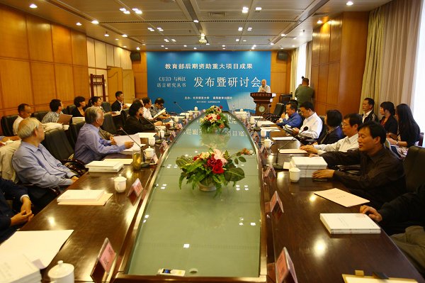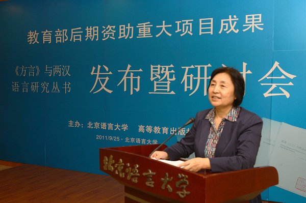 9月25日,教育部后期资助重大项目成果《〈方言>与两汉语言研究丛书》发布暨研讨会在北京语言大学举行。该项目由华学诚教授主持,丛书由高等教育出版社出版。教育部社科司副司长张东刚,北京语言大学党委书记王路江、校长崔希亮,高等教育出版社副总编查卫平,著名学者唐作藩、郭锡良、王宁、张双棣、张联荣、黄天树,以及中青年语言学专家姚振武、张猛、张博、杨荣祥、张民权、张旺熹、孙玉文、王贵元、孟蓬生、王立军、邵永海、赵日新、魏德胜、程娟、罗卫东等60余人出席了会议。与会者围绕《丛书》的选题、研究方法、研究内容、价值和意义展开了热烈的讨论,并对课题的进一步研究和北京语言大学学术地位的不断提升寄予了厚望。
