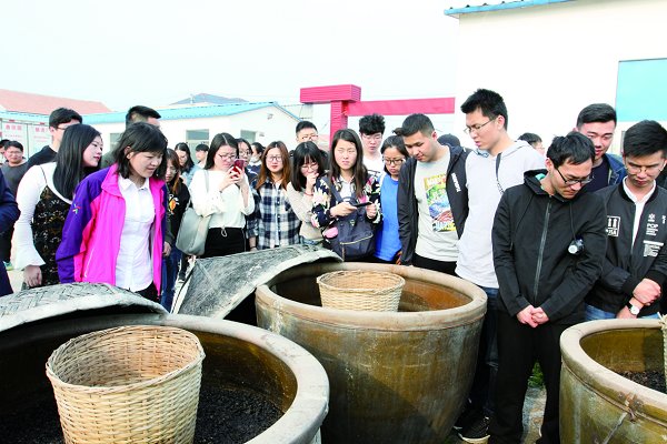 在连云港市赣榆区西棘荡村,学员们参观了村民服务中心、妇女儿童之家、村史馆,聆听了党的十九大代表、江苏“时代楷模”、西棘荡村党委书记钟佰均的报告。钟佰均结合二十多年的村支书经历,讲述了以党建为灵魂,发挥党支部凝聚力、战斗力的核心作用,将西棘荡村从穷村、乱村建设为富裕村、文明村的成功经验,给学员们带来了深深的思考和巨大的鼓舞。宜兴市湖父镇洑西村村委会主任助理程佳艳说:“钟书记扎根农村二十余年,一心一意为民谋福利、为村谋发展,我也要向钟书记看齐。”在连云港市赣榆区,学员们还深入宋庄镇考察了新乡贤文化建设,并聆听了赣榆区委常委、宣传部长许思文作的“新乡贤助推乡村振兴”专题报告。此外,学员们还考察了长鑫渔具厂、博雅农庄和曲坊园酿造厂等大学生村官干事创业点。