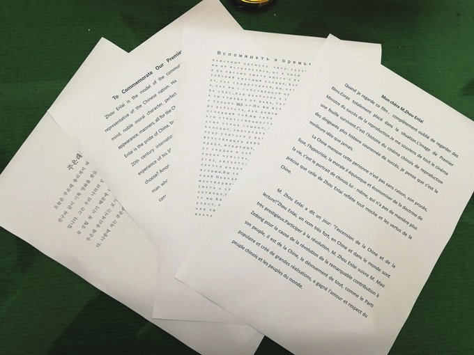 外国语学院16级、17级学生在通榆校区主楼教室集中观看《我眼中的周总理》《周恩来的四个昼夜》等影片,其他年级学生以宿舍为单位观看影片,共同追忆周恩来总理为中国人民谋幸福、为中华民族谋复兴所做出的卓著功勋。观影结束后,外院学子们纷纷结合自己所学语种写出内心的感动,他们这样写道:“周总理的崇高理想和坚定信念,他的伟大人格和精神风范必将永远激励着我们盐师人砥砺前行!”